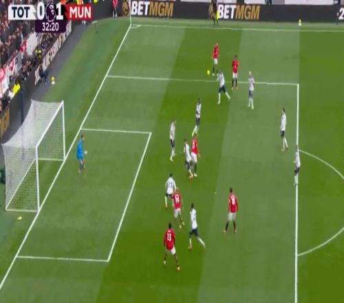 比赛的第31分钟,迪亚洛右路横传,姆贝莫头球冲顶破门。进球之后,姆贝莫双手一摊,示意球进得如此容易,这是曼联此役的第一次射正。